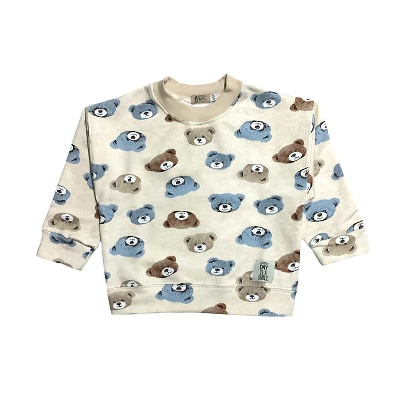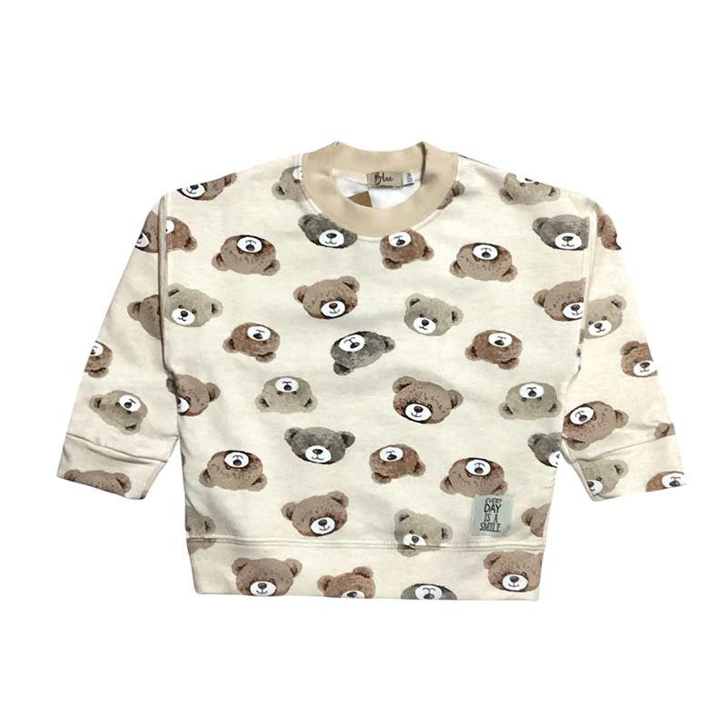 Buzo beba frisa, cuello redondo con puños. ESTAMPADO OSITOS
