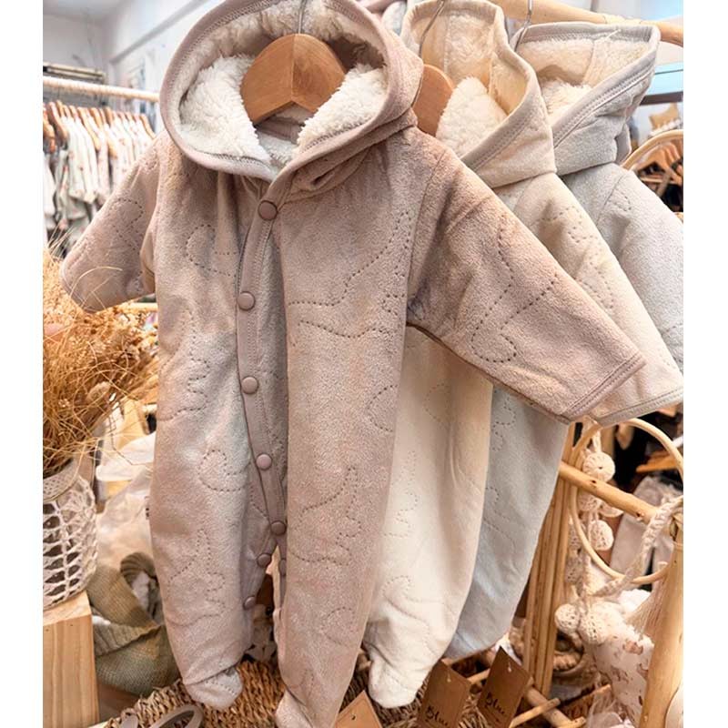 Enterito bebé piel Dinos, con corderito en su interior, botones/broches al tono y capucha con orejitas.