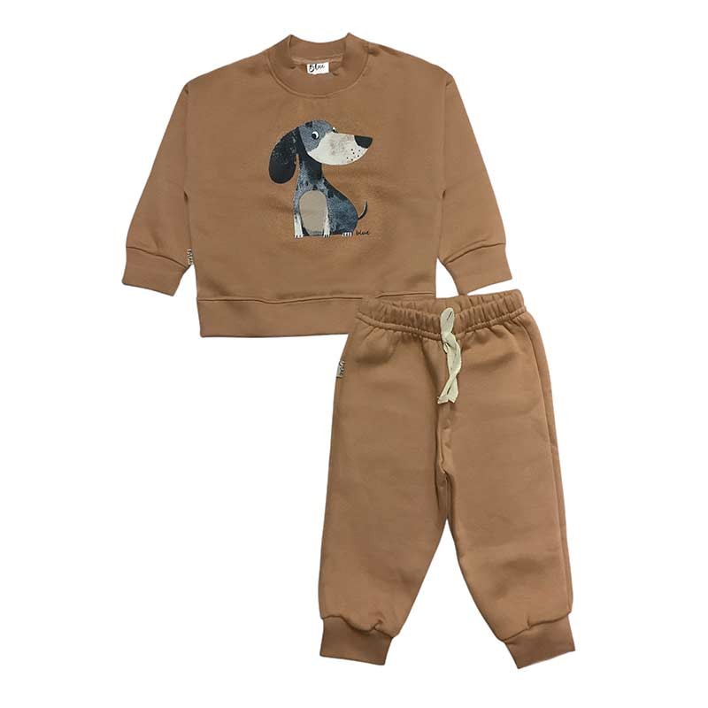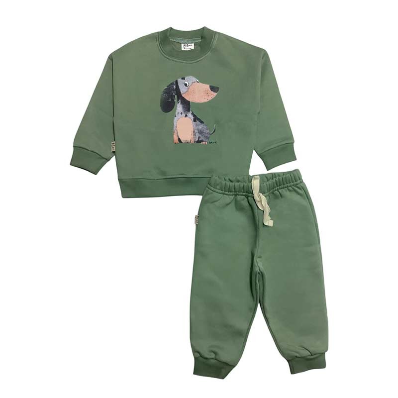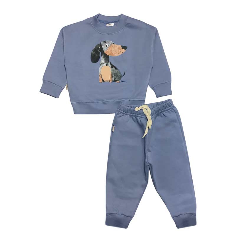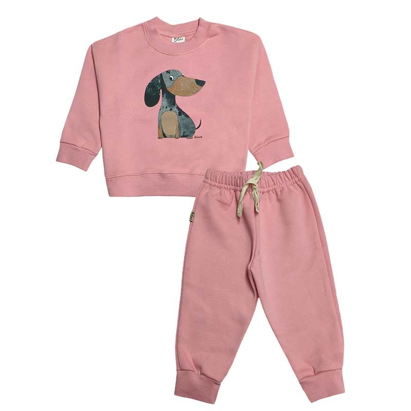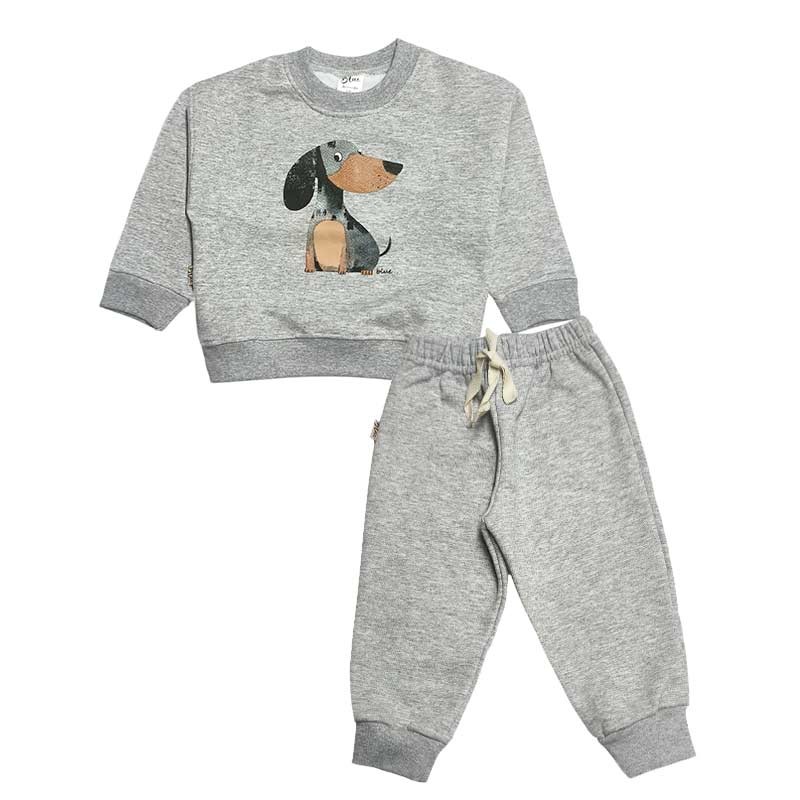 Conjunto bebé/a frisa: buzo c/broches y estampa + pantalón c/puño y cordón liso. ESTAMPA PERRITO SALCHICHA