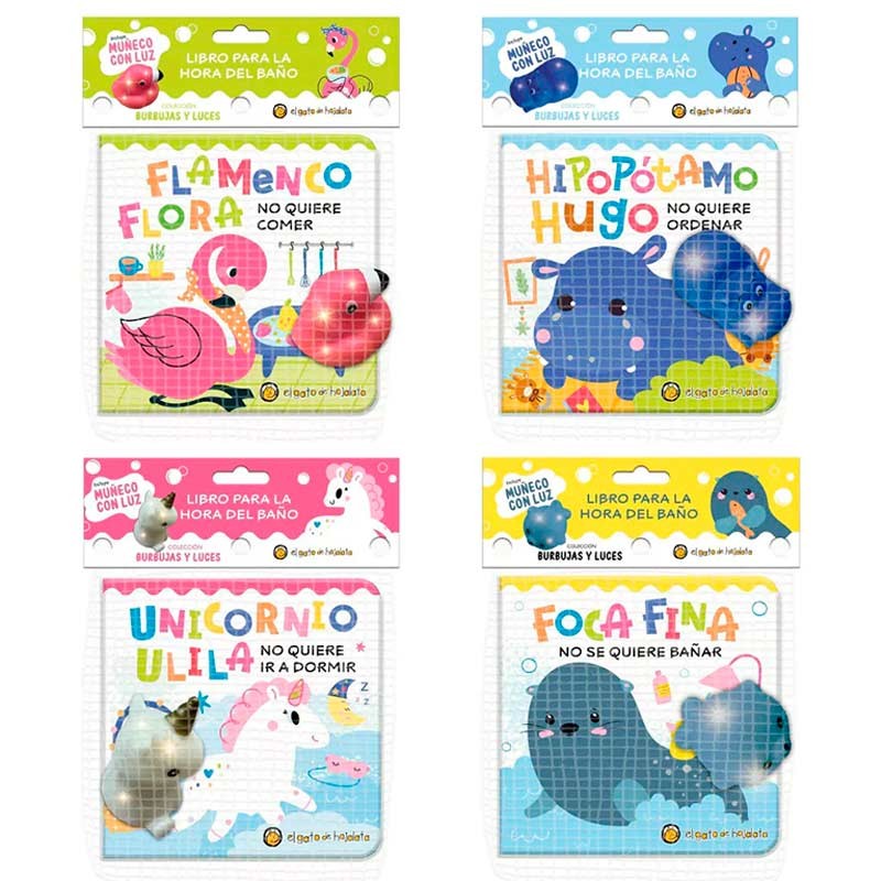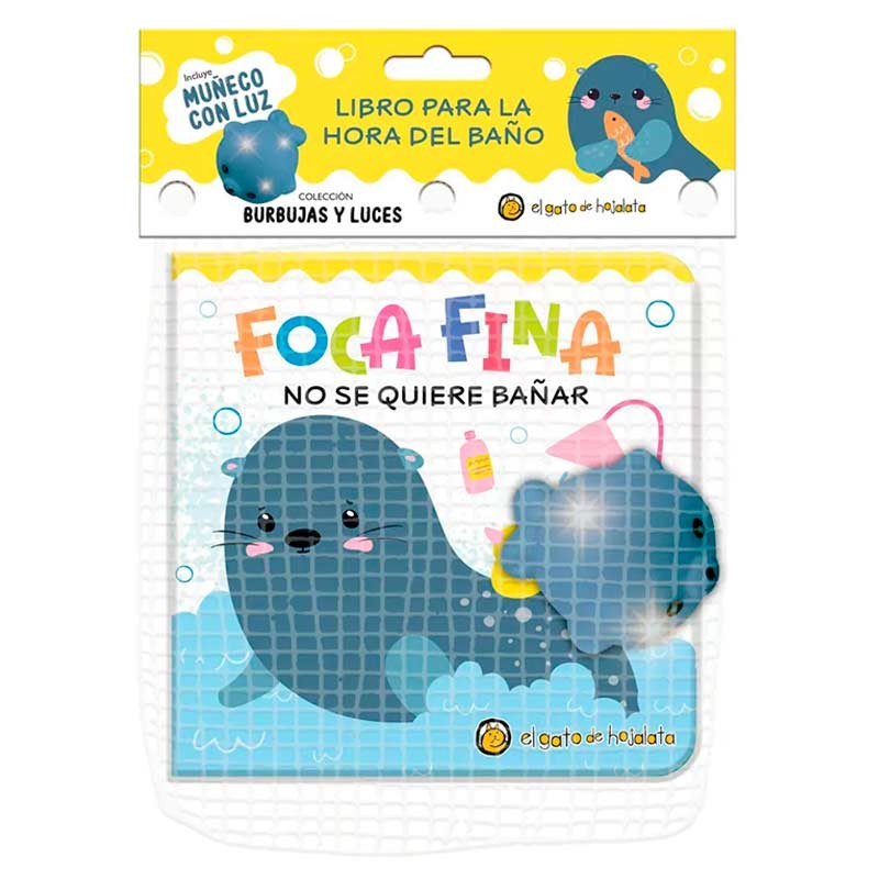 Librito para la hora del baño. Incluye un muñeco con luz.